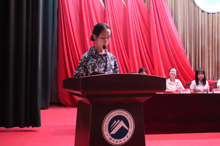 2006级电气工程及其自动化专业毕业生,现吉利集团质量管理中心主任谭杰同志作为优秀校友代表发言,他字句铿锵,分享了自己与舍友在大学期间以及工作期间的经历和感悟,并勉励在场新生们:“宝剑锋从磨砺出,梅花香自苦寒来。潇湘学院毕业的我们是优秀的,潇湘学院的你们将来一定会更优秀。”