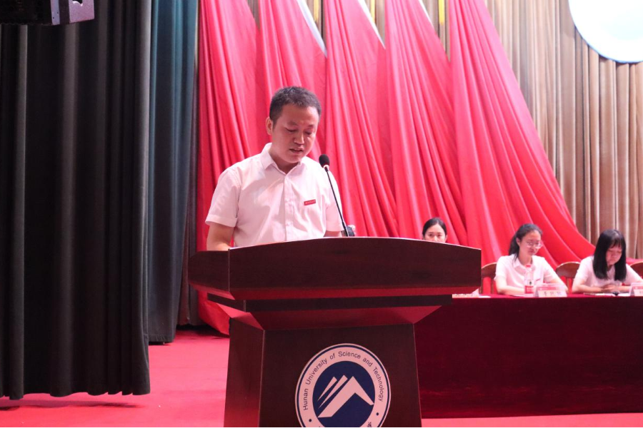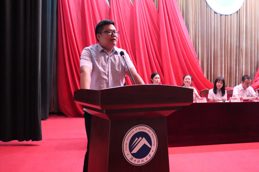 作为专业教师代表人文系副主任聂志军表达了他作为一名人文社科教师对“潇湘”一词的理解,并以“潇湘三解”引出“人生三境”。他表示,同学们来到潇湘学院要体验人生的三重境界,即一切过往,皆为序曲;立足湖南,着眼全国;不忘初心,脚踏实地。“愿你们在这鲜活而张扬的年纪,豪言不枉此生。”聂志军满怀激情地说道。