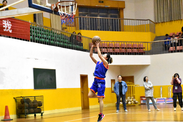 比赛开始前,我院学生到场为学院篮球队加油打气、呐喊助威,用热情迎接男子队和女子队的到来。晚7点整,我院与商学院女子篮球队队员分别入场,经过一分钟左右的热身运动后,双方队员相互致意并与教练握手,队员彼此加油打气后比赛正式开始。我院夺得首球,虽投篮未中,但比赛开始一分钟左右时1号罗月名投进首篮夺得两分。随后13号张洁也投中三分,鼓舞士气。在第三节比赛中,我院女子队五分钟内投中八球,在场潇湘学子无一不欢呼雀跃。我院女子队也以52:22的佳绩夺得女子组桂冠。